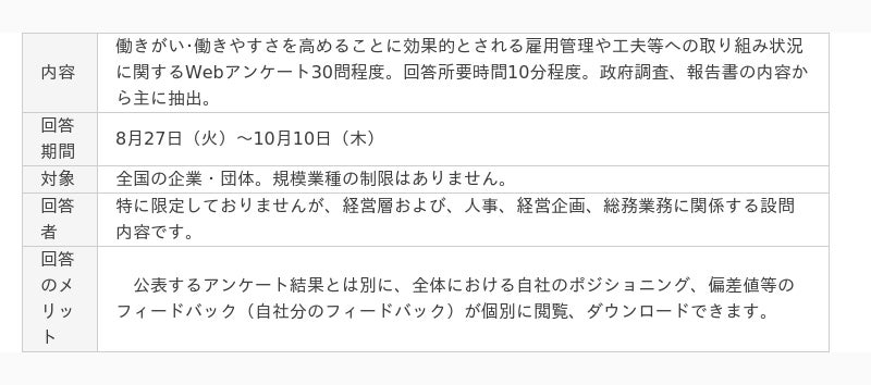 本アンケートは、人材確保の厳しさが増す傾向にある中、経営層が働きがい働きやすさを増進させる取り組みについての気づきを得て、人材の採用、定着、成長、そして事業の成長に資することを目的として実施しています。