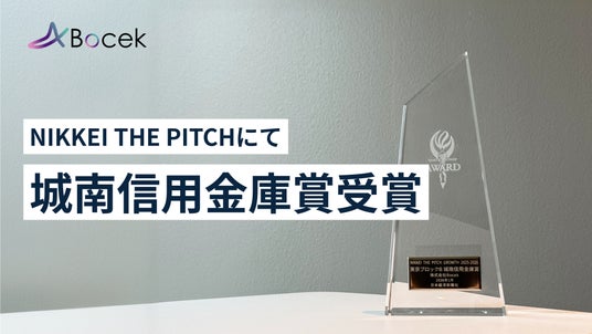 株式会社Bocek(本社:東京都港区、代表取締役CEO:沖村 昂志)は、日本経済新聞社が主催する「NIKKEI THE PITCH GROWTH 2025-2026 アワード」において、「城南信用金庫賞」を受賞いたしました。2026年3月23日(月)に授賞式が執り行われました。
