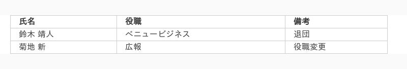 なお、併せて12月より以下のマネジメントスタッフが退団及び役職変更となったので併せてお知らせいたします。