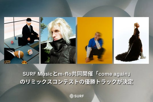 「Bringing Power Back to Music Creators(音楽のチカラをクリエイターに)」を掲げ、世界中の音楽クリエイターやレーベルなどのバイヤーが未発表楽曲を共有し、新たな才能の発掘とクリエイターの収益化を促進するデジタルマーケットプレイスの「SURF Music」が、m-floと共同開催した「come again」リミックスコンテストの優勝者がsennohに決定し、特別賞のSURF Select賞をAmiideとme-maiが受賞しました。