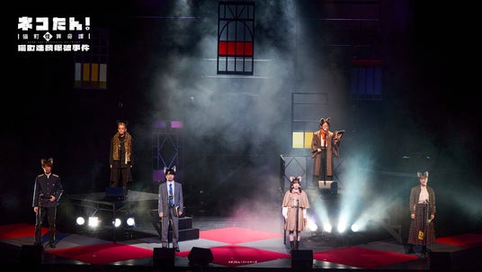 本作はいわゆる「朗読劇」ではあるが、猫耳をつけてそれぞれのキャラクターを彷彿とさせる衣裳をまとったキャストたちや、2つのひな壇が設置されたステージなど、目で見ても楽しめる要素が多い。爆発のシーンはスモークと照明、音で見事に表現されているなど、エンタメ性も抜群。きな臭い事件を描いていながらも、笑いたっぷり、楽しくハッピーな気分で観劇できる作品になっていた。