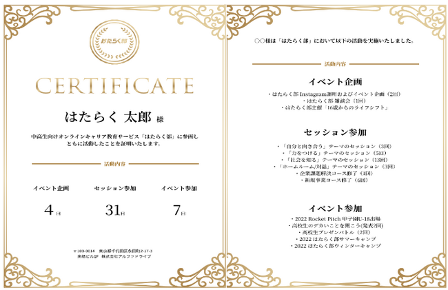 「はたらく部」は、株式会社NTTドコモの新規事業開発プログラム「docomo STARTUP」の協力の元、株式会社アルファドライブが運営する中高生向けキャリア教育サービスです。バーチャル空間で、現役社会人コーチと同世代の熱い仲間と社会について考えを深める中高生向けキャリアのオンライン部活です。全国どこからでも参加可能!住んでいる地域に関係なく、都市や地方で活躍している大人から学ぶことができます。