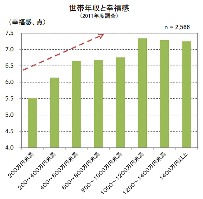 (参考元:内閣府「人々の幸福感と所得について(中長期、マクロ的観点からの分析2.)(平成26年2月14日))