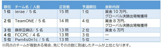 熾烈なスコア争いが繰り広げられた結果、予選を1位で通過した、チーム「ierae」が決勝でも見事1位となりました。第2位は予選順位4位の「TeamONE」が勝ち取り、両チームが10月に米国で開催されるグローバルでの決勝、「Automotive CTF 2024 決勝」への出場権を獲得しました。