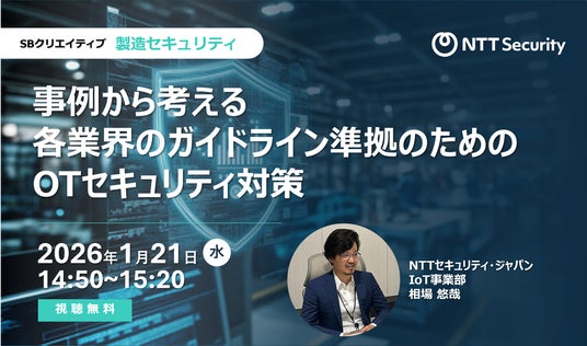 NTTセキュリティ・ジャパン株式会社(本社:東京都千代田区、代表取締役社長:関根 太郎、以下NTTセキュリティ・ジャパン)は、2026年1月21日(水)に開催される、SBクリエイティブ株式会社(ビジネス+IT)主催イベント「製造セキュリティ」にて「OTセキュリティ」をテーマに講演を行います。