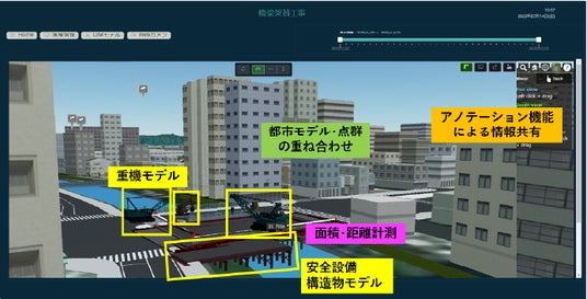 すべての操作をWEBブラウザ上で行えるため、高機能PCや特別なソフトウェアが不要であり、インターネット環境が整っていれば、事務所などの遠隔地からも現場の進行状況を反映した4次元モデルを確認できます。