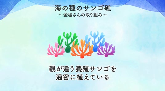 当社は、「海の種」、金城浩二氏と共に次世代の「ミラクルコーラル」を生み出し続けることで、気候変動にも適応して生き続けるサンゴが海の環境を再設計していくという期待感や手応えを感じており、これまで以上にこのサンゴの再生活動に精力的に取り組んでいきます。