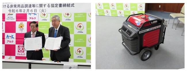 また、今回の協定締結時の目録として発電機を1台山口県立総合医療センターへ寄贈いたしました。この発電機は、5.5キロワットの電力を供給でき、200ボルトの電源として利用できることから、JDR(国際緊急援助隊)の医療チームが、昨年2月に発生したトルコ地震の救援の際に、屋外の野外病院で手術室の運用の際に使用するなど、災害時に様々な用途で使用できるものです。