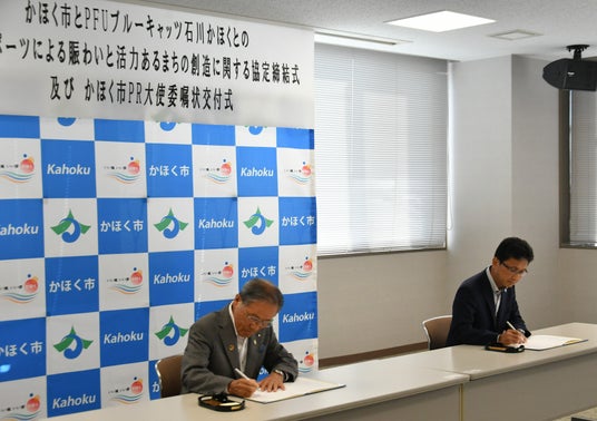 ~プロスポーツによる賑わいと活力あるまちの創造に関する協定締結式及びかほく市PR大使委嘱状交付式へ参加~