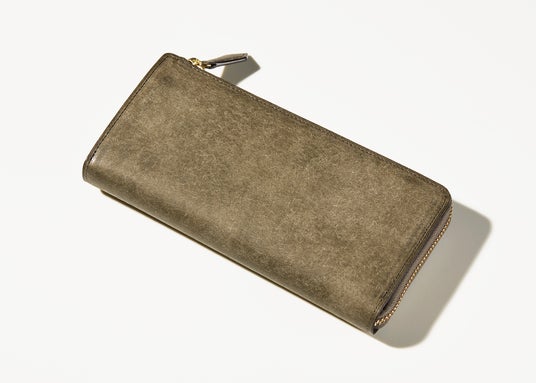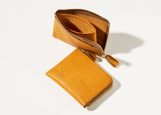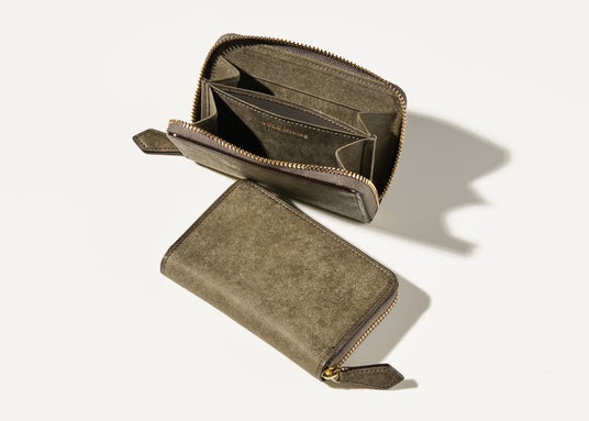 ラウンドジップ財布と同じ製法で作る、ファスナー小銭入れです。コンパクトで使いやすい、お札は3つ折りにすることで収納可能です。
