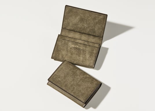 スタイリッシュに折り畳まれた名刺入れです。革の風合いや柔らかさをより楽しめるデザインです。ビジネスシーンでも上品さがあります。