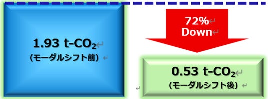(2)CO2排出量72%削減による環境負荷軽減トラック輸送に比べ、1台あたり1.93トンから0.53トンへ大幅削減(弊社試算)