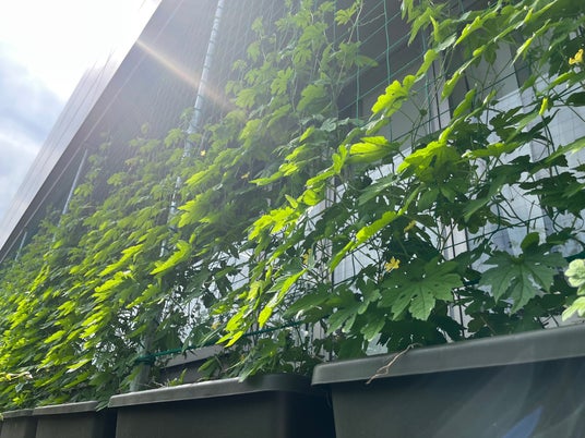 春日市役所本庁舎で育てた緑のカーテン(令和5年撮影)