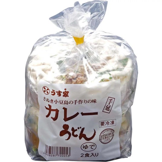うす家 讃岐小豆島カレー手延うどん【冷凍】2食入 1000g手延べうどんつゆの食感を活かせるようにカレー粉を厳選し、牛肉と玉ねぎとじっくり炒めました。こくのあるカレーつゆとうどんが程好くマッチしています。