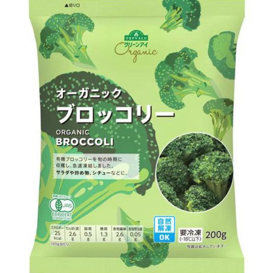 オーガニックブロッコリー 200g トップバリュ グリーンアイ旬の時期に収穫したブロッコリーのつぼみ部分を急速凍結しました。ムダがなく、下ごしらえの手間がかからず手軽にお使いいただけます。