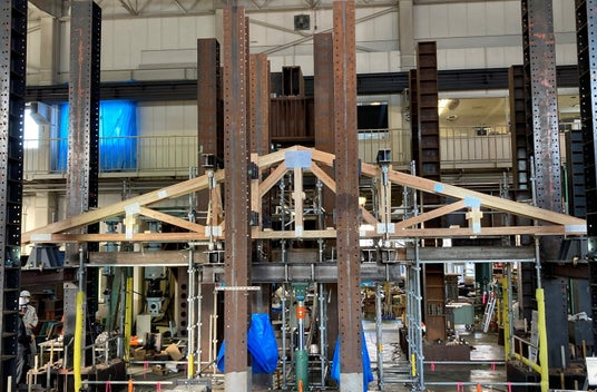 トラスで、軸組工法用の製材の構造性能を実証し、製材の適用範囲を拡大。