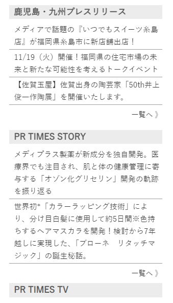 南日本新聞社(鹿児島県鹿児島市)は10月24日、公式ホームページ「373news.com」に、プレスリリース配信大手「PR TIMES」(東京)から提供を受けるコンテンツ「STORY」と「TV」の掲載を始めた。全国の企業・団体、自治体の新商品、イベント情報などを配信し、読者の暮らしの充実、生活の利便性向上を後押しする。