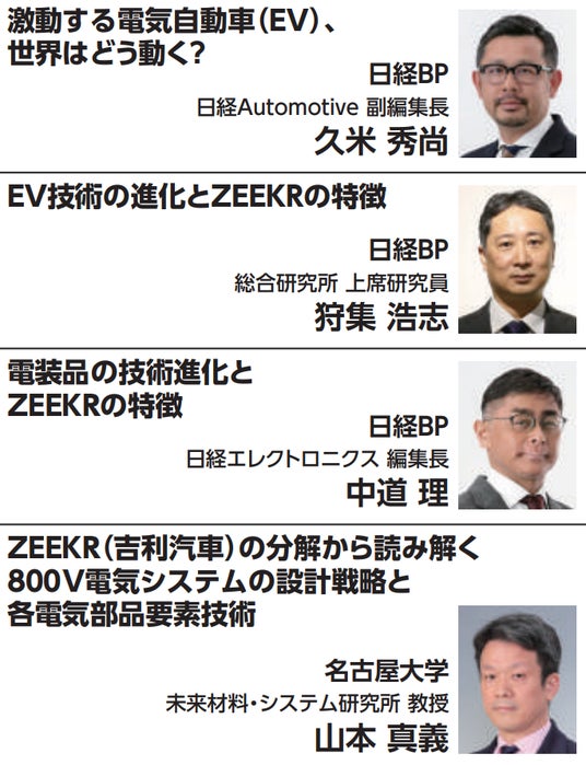 「TECHNO-FROTIER 2024」の主催者企画では、中国Geely(吉利汽車)の最新EV「ZEEKR 007」を実際に分解し、その内部構造を理解できる実車展示を実施します。Volvoの親会社である中国・吉利汽車(Geely)がEV展開を本格化させています。同社は電気自動車ブランドとして「ZEEKR」を立ち上げ、テスラ対抗車である最新EV「007」を2024年1月に発売しました。発売2カ月を待たずに1万台を超える生産を完了しています。