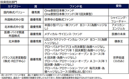 さらに、海外株式を投資対象とするファンドやバランス型のファンド等、幅広いアセットクラスが 評価されました。