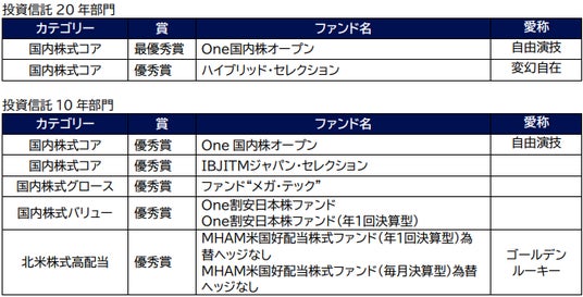 「投資信託部門」は過去3年間、「投資信託10年部門」は過去10年間、「投資信託20年部門」は過去20年間を選考期間としている。選考に際してはシャープレシオによるランキングに基づき、最大ドローダウン、償還予定日までの期間、残高の規模等を加味したうえで選出している。選考対象は国内籍公募追加型株式投信とし、確定拠出年金専用およびSMA・ラップ口座専用は除く。評価基準日は2025年3月31日。
