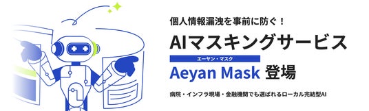当社では、誰もが安心安全にAIを活用できる世の中に向けて、情報漏洩を未然に防ぐ、AIによるマスキングソリューション「Aeyan Mask」を提供しています。