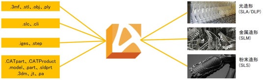 VoxelDance Additiveは、多様なファイルフォーマットに対応しており、光造形(SLA/DLP)、金属造形(SLM)、粉末造形(SLS)に対応した高品質な造形データを容易に作成できます。