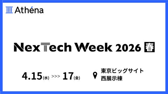 株式会社Athena Technologies(本社:東京都文京区、代表取締役:阿部 武、以下、「 Athena」)は、2026年4月15日(水)~17日(金)に東京ビッグサイトで開催される「NexTech Week 2026【春】」 に出展いたします。