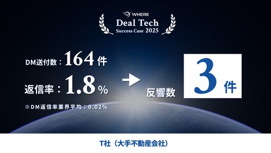 株式会社WHERE(本社:東京都文京区、代表取締役CEO:阿久津 岳生、以下「WHERE」)は、地権者とつながる不動産AIツール『WHERE』の導入社数が2025年12月時点で100社を突破したことをお知らせいたします。当社は衛星データとAIを活用し、不動産用地仕入れの課題にアプローチする『WHERE』を開発・提供しており、主にディベロッパー・不動産仲介領域の導入企業において、成約や反響数増加などの事例が生まれています。