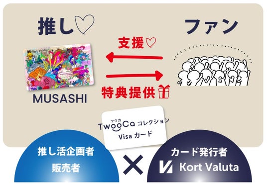 「推し」とつながる新サービス「TwooCaコレクションVisaカード」にMUSASHIアート登場