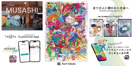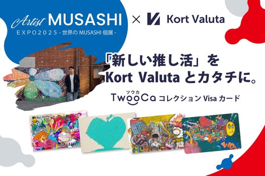 MUSASHIのアートがデザインされたカードも制作される予定となっており、その告知を兼ねた展示を『世界のMUSASHI個展』で行う。TwooCaコレクションVisaカード×MUSASHIアートのコラボは、アーティストMUSASHIのファンがときめくアイテムになりそうだ。