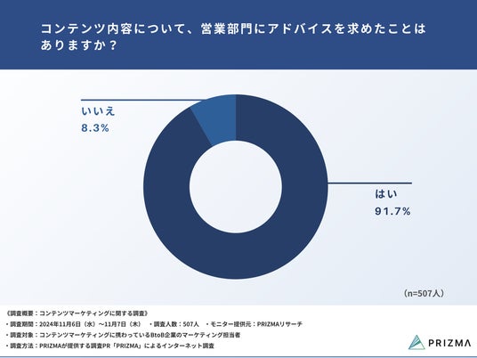 今回、株式会社PRIZMA(https://www.prizma-link.com/press)は、コンテンツマーケティングに携わっているBtoB企業のマーケティング担当者507名を対象に、「コンテンツマーケティングに関する調査」を実施しました。