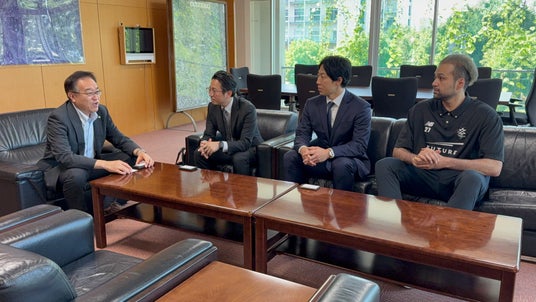 代表取締役の黒田真一社長、佐藤智仁監督、玉川裕康キャプテン等6名が7月28日(月)に市長を訪問しました。終了した2024-25リーグH(運営:一般社団法人日本ハンドボールリーグ)のレギュラーシーズンでは20勝2敗4分で3位、プレーオフでは3位の成績を残し、大健闘されました。市長と和やかに歓談されながら、来シーズン開幕に向けての意気込みを語ってくださいました。