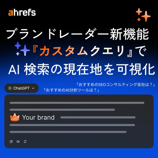 SEO 分析を主軸とした、AI 可視化・競合分析・コンテンツ作成支援・ウェブ分析・SNS 投稿機能などマーケターが必要な機能を網羅するマーケティング・オールインワンツールの「Ahrefs(エイチレフス)」を提供する当社は、AI 検索におけるブランドメンション追跡ツール『ブランドレーダー』において、ユーザーが独自に設定したプロンプトで LLM 内のブランド言及を追跡できる「カスタムクエリ」機能の提供を開始いたしました。