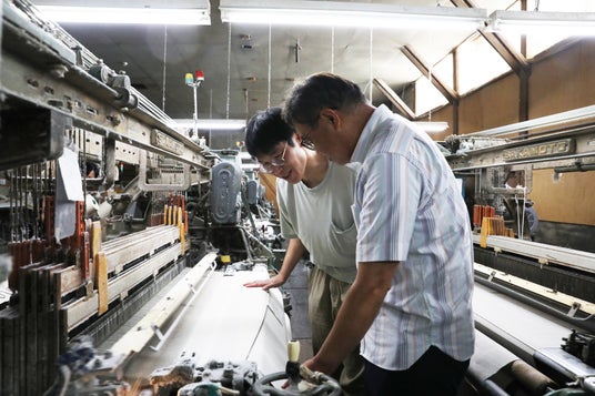 「遠州織物」は世界的なアパレル高級シャツ生地として業界の中では古くから知られた生地。通常の20~30倍の時間をかけゆっくりと織り上げるHUISの生地は、特別な風合いと機能性を持つ。