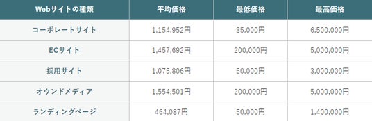 最低価格は3万円台から、最高価格は650万円まで。Webサイトの種類によって異なるので、それぞれ見ていきましょう。