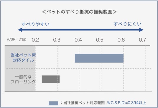 ※参考文献:「携帯型床のすべり試験機(ONO・PPSM)の開発/小野 英哲」(2004年)/「小型⽝の動作に必要な床の滑り抵抗の提示 ペットの安全性からみた床のすべりの評価方法その1(2008年)、その2(2013年)/横山 裕 他」