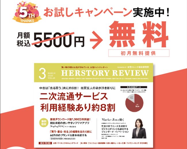 女性トレンド月刊レポートHERSTORY REVIEWが5周年を記念しおためし無料キャンペーンを開始