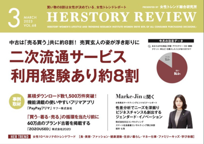 女性トレンド総研は2023年2月10日発刊のHERSTORY REVIEW3月号内にて、2023年の女性の二次流通サービスの利用動向の調査結果を発表しました。