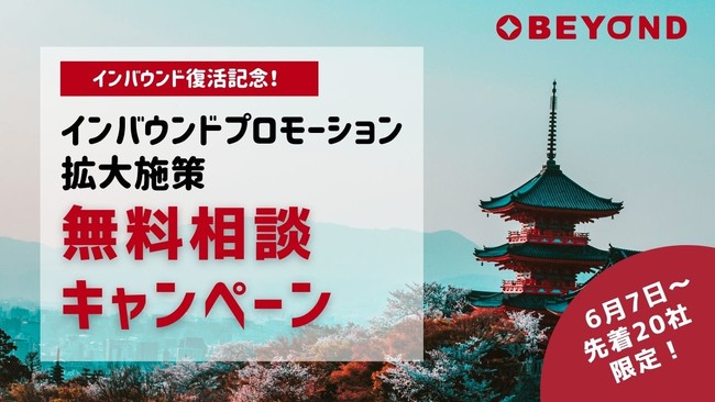 ”地方創生×インバウンド×デジタルマーケティング”をテーマに、全国で300以上もの自治体や企業のインバウンド・海外向けSNS・デジタルマーケティングを手掛ける株式会社ビヨンド (本社:東京都江東区、代表取締役:道越 万由子)は、この度、6月10日からの訪日外国人観光客受け入れ再開を受け、全国の自治体や海外へP Rをしたい企業を対象に、あらためて拡大・復活が期待されるインバウンド需要を競争優位で取り込むためのマーケティング・情報発信施策に関して、プロのコンサルタントが無料でのカウンセリングと現状診断を行う(3か月間限定)特別キャンペーンを開催。6月7日から、先着20社限定にてお申し込みの受付をいたします。