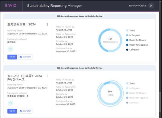 Enviziの正確なデータ管理体制の中で収集・処理された情報を活用し、開示項目別タスク割り当て・承認・進捗および証跡管理、コメント共有機能などを通じて、チームで効率的に報告書を作成することができます。また、環境省の公開係数や開示項目の改変にも追従しているため、管理漏れのリスクを最小化します。さらに、EEGS対応用のデータとその他のESGデータをEnviziで一元管理できるため、例えば、EESG用データを有価証券報告書におけるサステナビリティ基準委員会(SSBJ)の開示基準対応に活用することも可能です。