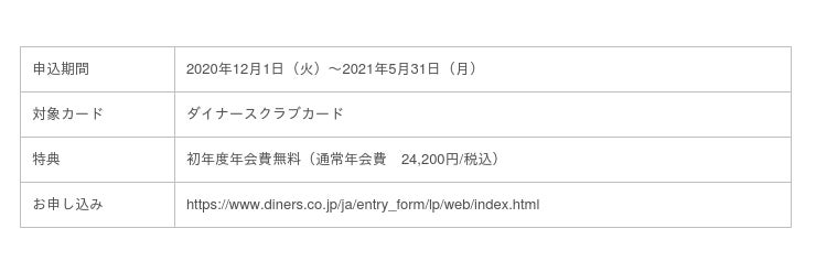 このたび、2020年12月1日から実施している「ダイナースクラブカード 60周年記念 新規入会キャンペーン(初年度年会費無料)」をご好評につき2021年5月31日(月)まで延長します。