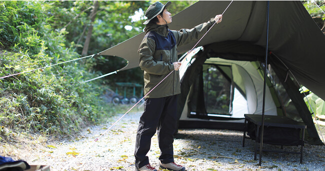 ~「耐水圧25,000mm」、「透湿度10,000g/平方メートル /24h(JIS-1099 B-1法)」でキャンプ・アウトドアから普段使いまで様々なシーンで活躍~