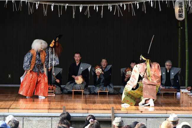 池田町および池田町教育委員会は、令和4年8月11日(木・祝)に、須波阿湏疑(すわあづき)神社境内・多目的ステージにて、23年ぶりとなる「葉月薪能(はづきたきぎのう)」を開催しました。