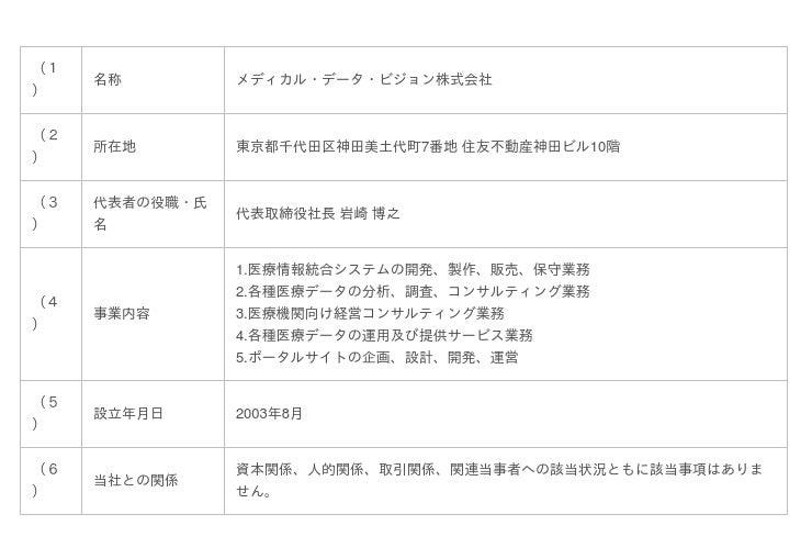 一方、メディカル・データ・ビジョンは、「医療・健康情報の一元化と利活用を促進し、生活者メリットの創出に貢献する」ことを目指して事業を展開しておりました。病院、クリニック、介護施設等をはじめとする医療・健康情報の一元化を行うことで、患者が自身の診療履歴や健康状態を管理・閲覧できる環境の創出、また、データ分析により更なる医療の質向上を実現してきました。今後は各種サービスを拡張させるために、システム開発およびその維持・強化を重要な課題と認識し、自社開発だけでなく、外部企業との連携により開発スピードを上げていく必要性を感じておりました。こうした背景を踏まえ、当社とメディカル・データ・ビジョンは資本業務提携に合意し、PHR(パーソナルヘルスレコード)システム「カルテコ」の開発・運用や、その他今後メディカル・データ・ビジョンが進めていく予定の各種システム開発に積極的に関与し、開発体制を強化していく予定です。また、メディカル・データ・ビジョンのグループ会社である開発会社との人的交流などを積極化させることで、メディカル・データ・ビジョン開発体制の底上げに貢献していくことを考えております。