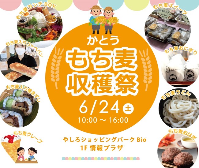 「かとうもち麦収穫祭」は、地域のお店が作った加東市産もち麦を使用した様々なグルメが楽しめる他、ミニセミナーでもち麦について学んだり、収穫したばかりのもち麦を試食できる、もち麦の魅力が満載の初開催のイベントです。