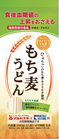 播州ラーメンでも有名な地元の製麺所遠藤コンスがもち麦粉を使った「もち麦うどん」にして販売します。