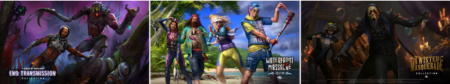 また、「ねじれた仮面舞踏会コレクション」では『Dead by Daylight』の7周年を記念して不気味なコーディネイトを取り揃えています。ゴーストフェイス(R)の「仮面舞踏会のゴーストフェイス」コーディネイトは、身の毛もよだつ舞踏会にピッタリの青、黒、ゴールドからなる上品で不気味なアンサンブルです。「仮面舞踏会のプレイヤー」コーディネイトでは、フェン・ミンが三つ揃いのスーツとそれにマッチした仮面で颯爽とした姿を披露します。
