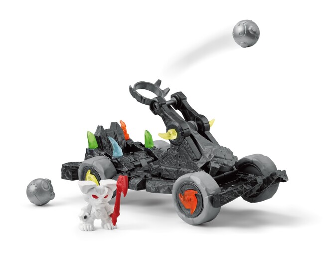 ミニクリーチャーが操る投石機の『カタパルト』は、実際に石弾のパーツを飛ばして遊べます。