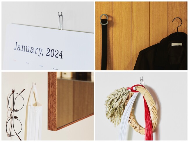 アクセサリー、カレンダー、鍵、ベルト、コードなどお好みのアイテムをリビングや玄関で。