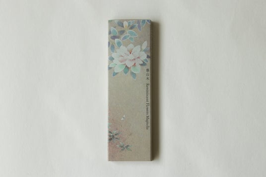 株式会社 薫寿堂は、四季を想う和の心をいつも傍にと願うお香として、華やかに香りながら、 どこか控えめで奥ゆかしいシリーズ「Reminiscent Flowers」を本日12月9日に発表、発売することをお知らせいたします。本シリーズは、「沈丁花」「泰山木」「藤」「蓮」「金木犀」「水仙」6種類の花の香りを墨の香りに織り交ぜ、縁側で本を読んだり物を書いたりしていると、季節の香りに満たされ心が潤う--そんな、今は昔の情景を感じられるものとなっています。また、パッケージには、日本画家・定家亜由子氏の美しい花の日本画をあしらっており、一年を通して贈りものにも最適なデザインです。